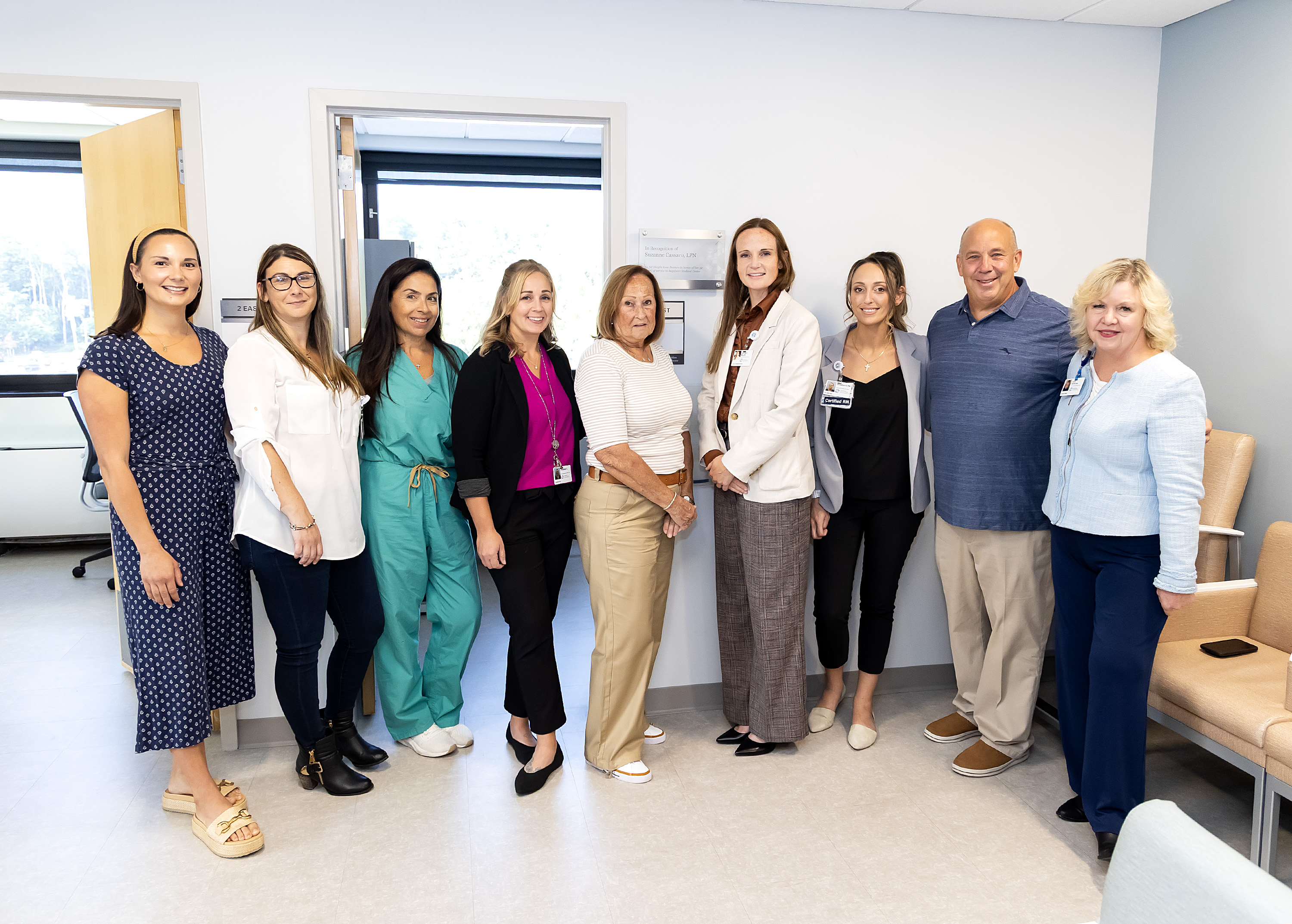Led by Karl Strom, M.D., along with Richard Greco, D.O., Silvia Fresco, M.D., and Jonathan Reich, M.D., the surgical team decided to dedicate the plaque to Suzanne Cassaro, a retired nurse whose 52-year career at Bayshore touched countless lives. Known for her friendship, kindness and unwavering commitment to patients and colleagues alike, Suzanne’s legacy continues to embody the very best of Bayshore’s culture of compassion.